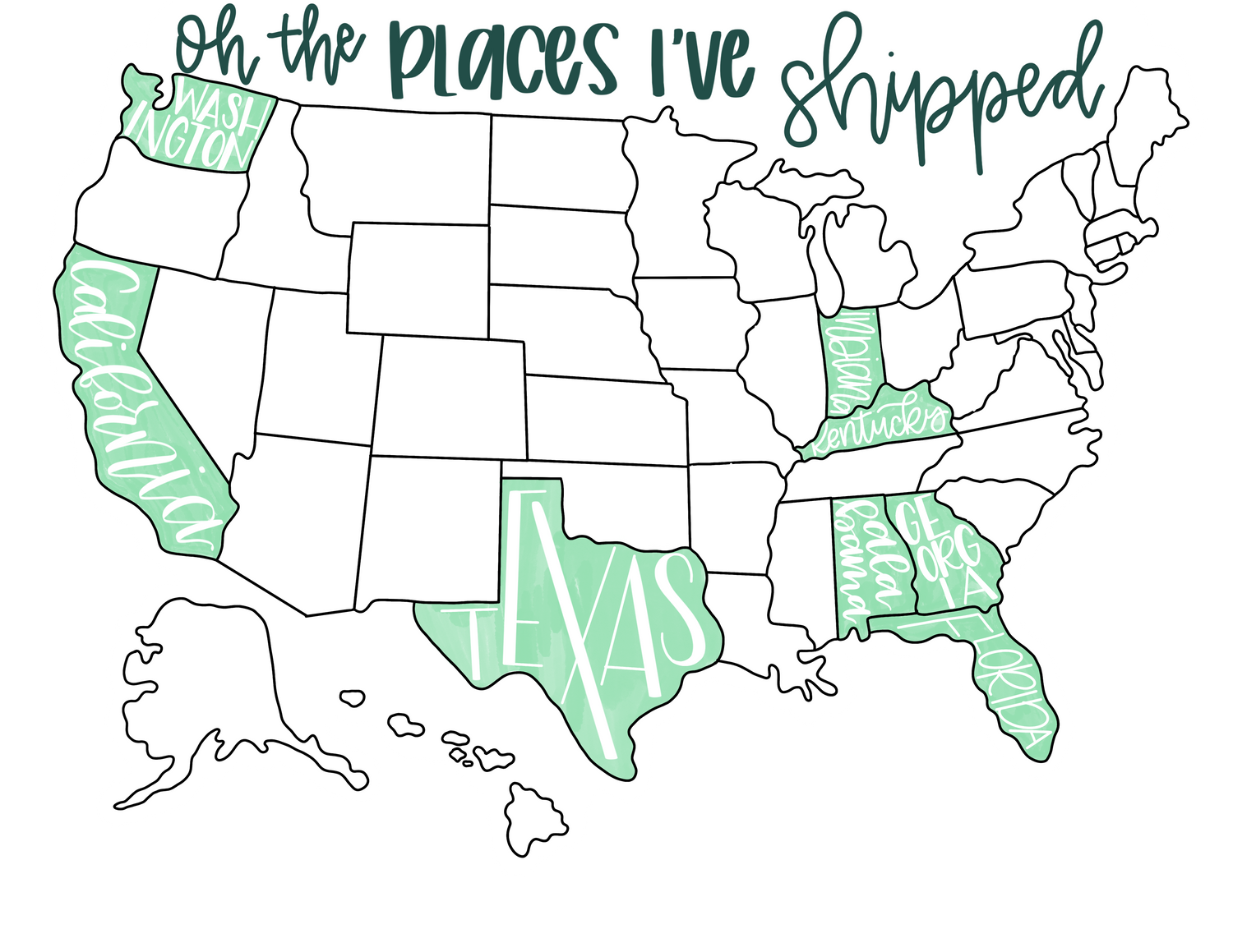 Help me reach my goal of filling up this map by the end of 2024! Be the first person to order from a state I haven’t shipped to yet, and you’ll receive a FREE GIFT!!